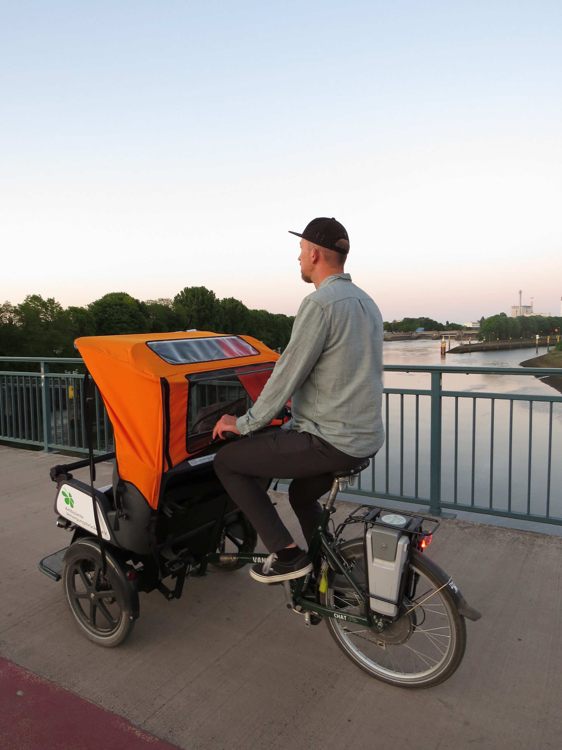 Jeder kann Rikschafahren lernen! Ob jung oder alt, Studentin oder Rentnerin – wir freuen uns über alle, die mit Herz und Offenheit dabei sind. Du wirst in Trainings mit erfahrenen Piloten ausgiebig auf die Fahrten vorbereitet und bekommst alle Unterstützung, die Du brauchst, um sicher durch die Straßen zu fahren. Und keine Sorge, Du musst kein Leistungssportler sein: die Rikscha hat eine Elektrounterstützung!