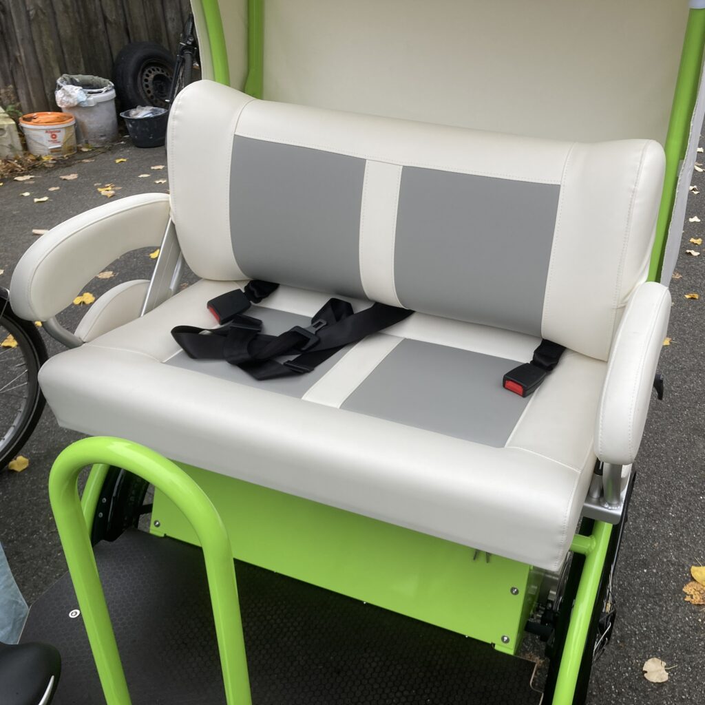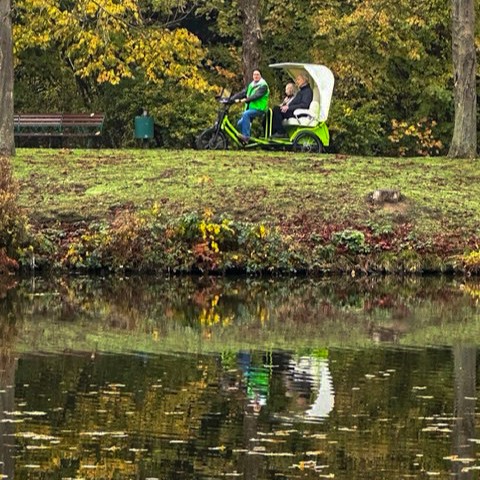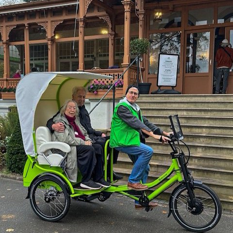 Die Rikschas sind spezielle Anfertigungen, bieten sicheren und komfortablen Transport und sind besonders auf die Bedürfnisse älterer Menschen ausgelegt – bspw. mit einem Regen- und Sonnenschutz, einer Einstiegshilfe oder warmen Fußsäcken und Decken für kältere Tage.